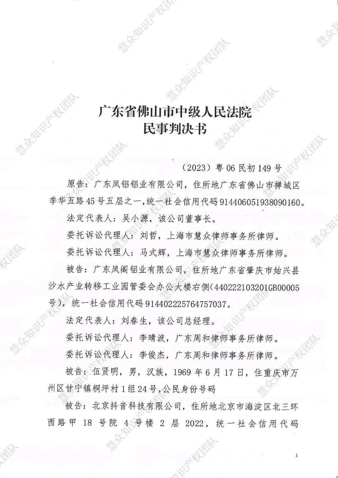 攀枝花判赔800万!辉知队代理“凤铝”商标维权案胜诉